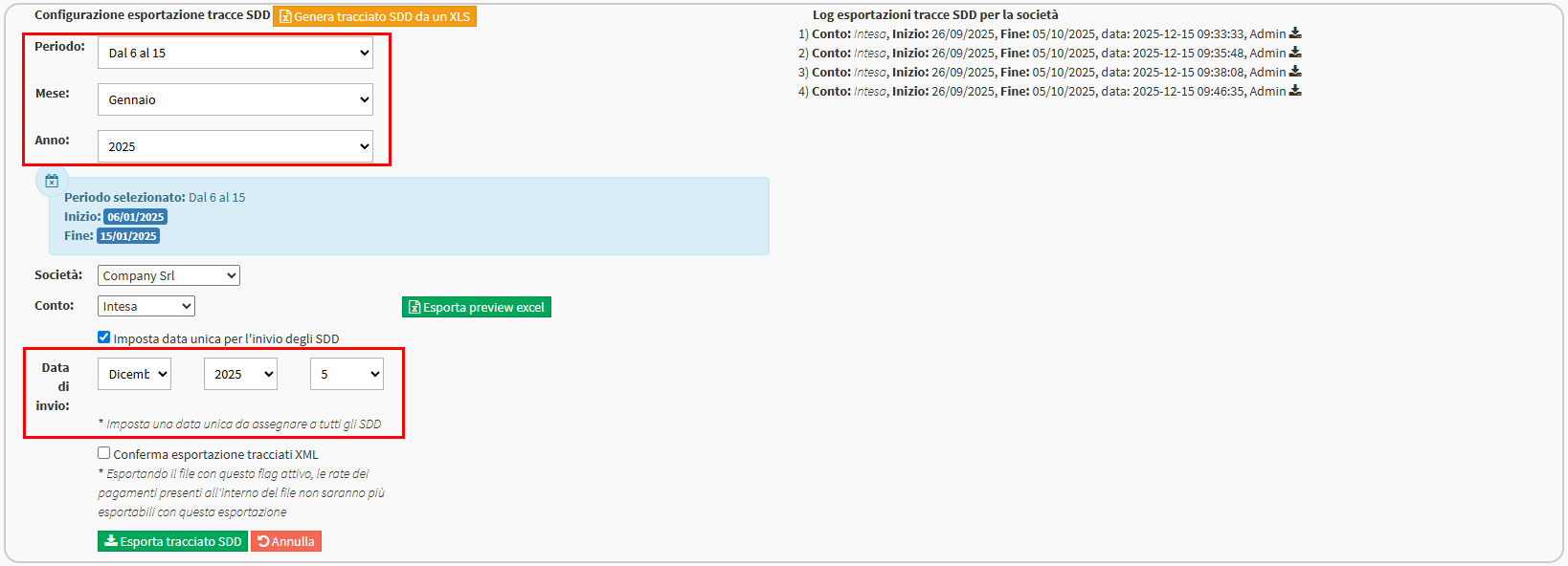 4.2 – Esportazione Tracciati SDD con periodi pre-configurati