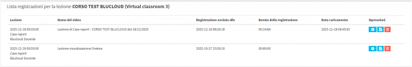 Qui verranno elencate tutte le registrazioni derivanti da questa lezione e sarà possibile, visualizzare, salvare la registrazione nell’archivio o eliminarla nel caso si trattasse di una registrazione extra non necessaria per la lezione: