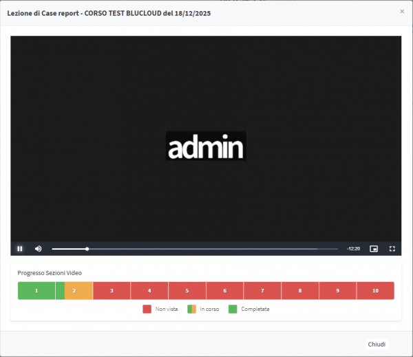 Cliccando quindi sul pulsante “Guarda il video” verrà avviata la visione della registrazione, nella parte sotto alla registrazione verrà mostrata la barra di avanzamento della visualizzazione della registrazione che avanzerà in modo automatico durante la visione della registrazione.