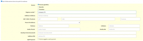 Per quanto riguarda invece il codice destinatario, il box comparirà solo sulle anagrafiche con residenza in Italia: