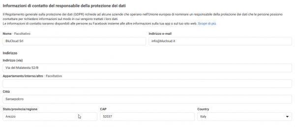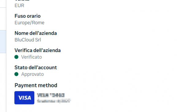 Ora, se non è già stato fatto precedentemente all’indirizzo https://business.facebook.com, inserire/aggiornare i propri dati di pagamento.