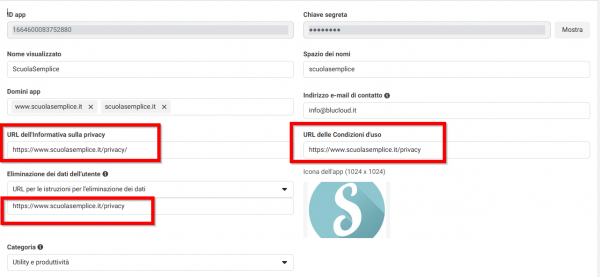 4. Configurazione su ScuolaSemplice dei dati generati nei propri account Meta