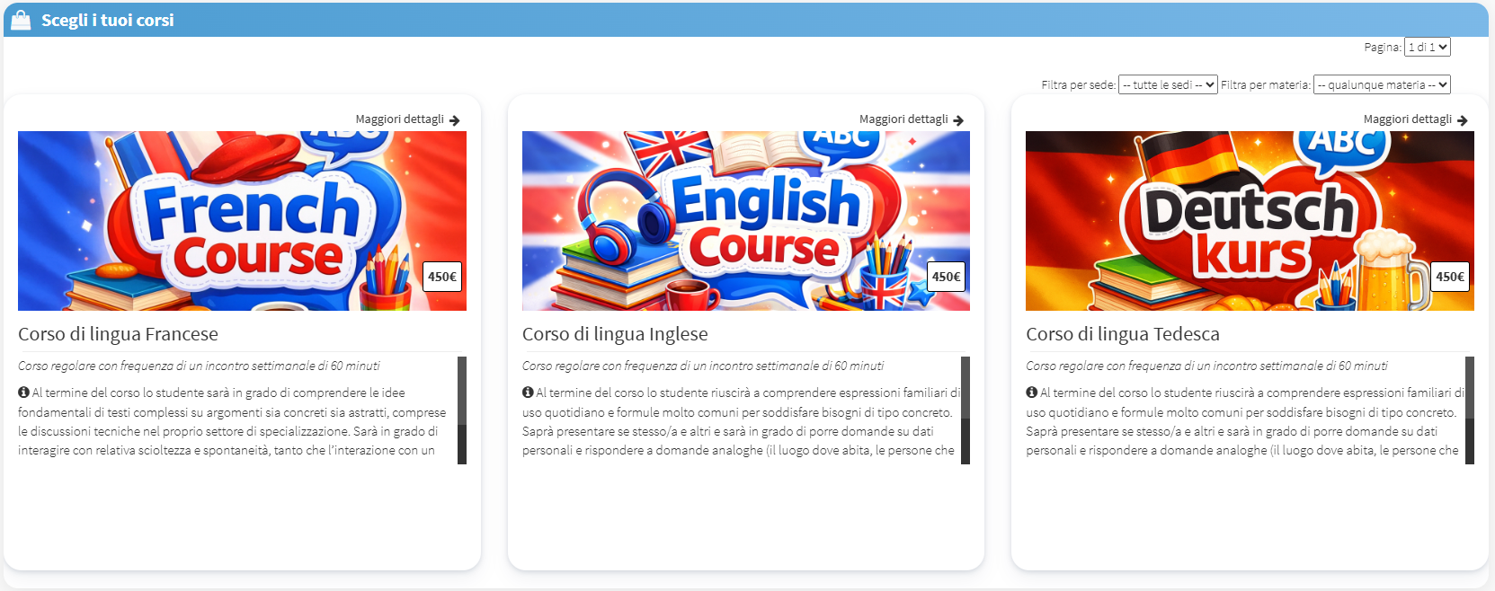 Mostra allo studente tutti i corsi disponibili online per l’iscrizione